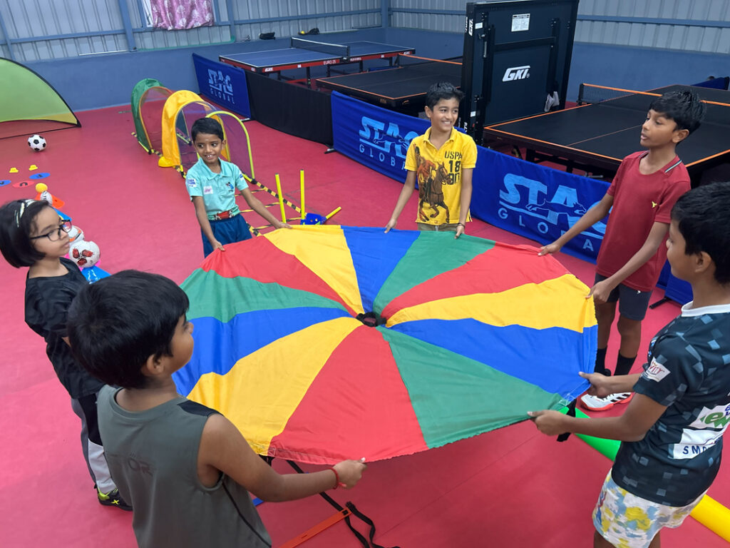 Children learn basics of 10+ sports including football, cricket, basketball, athletics, yoga and more.